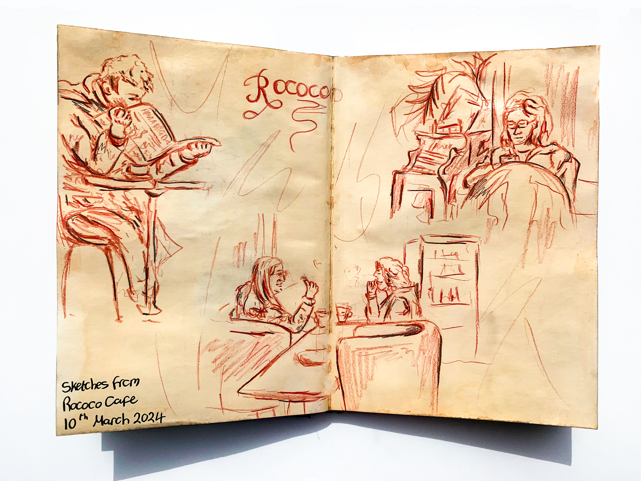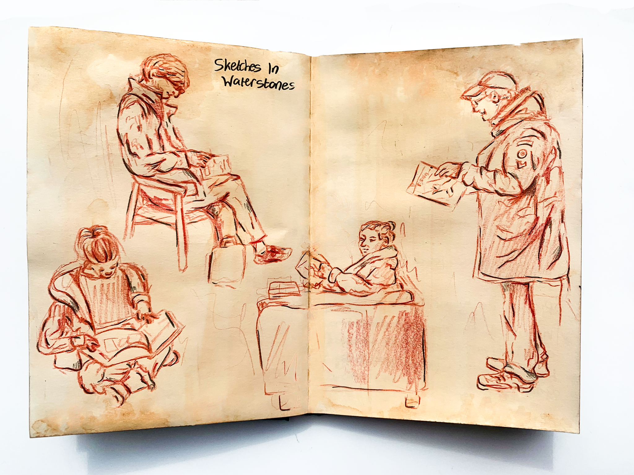 A collection of pen and pencil, watercolour, and digital observational sketches